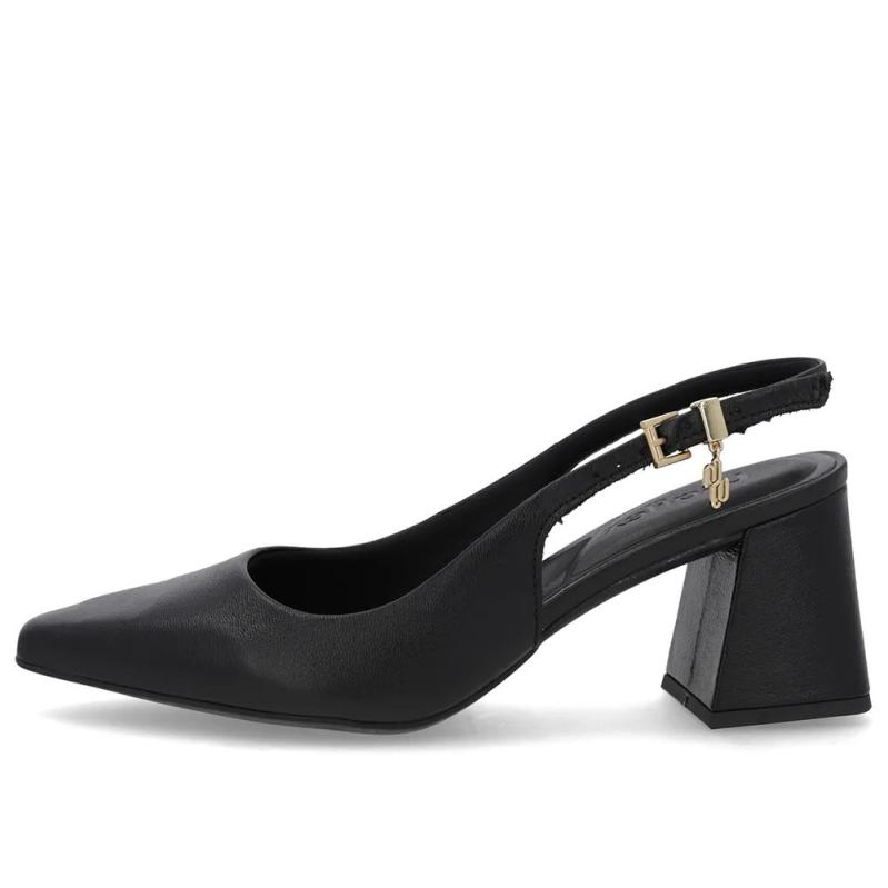 Slingback cabedal em couro napa new milano na cor preto. O modelo possui tecnologia +Bem-Estar, com espumas posicionadas em pontos estratégicos na palmilha garantindo conforto e suavidade na pisada.